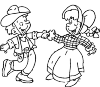 Two cowboys, line dancing to do. Line Dancing with many people in a line dance.